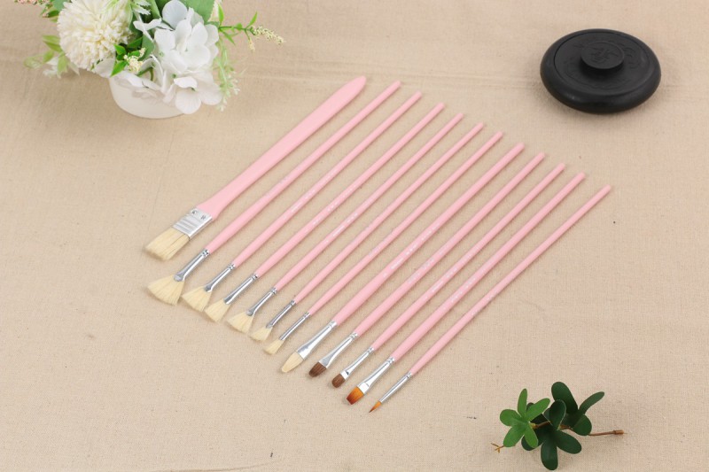 » 艺笔坊B12粉色杆笔刷(金色铁盒十二支套装)