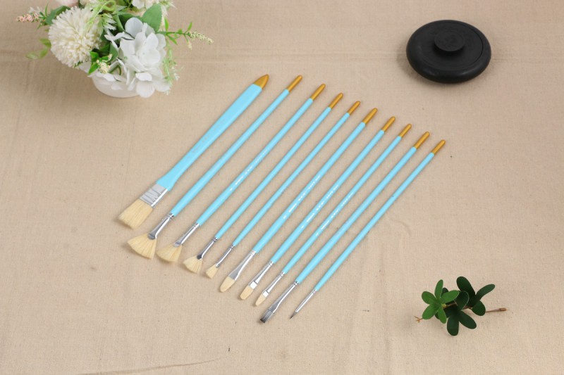 » 艺笔坊W10浅兰杆笔刷(印花浅兰宫崎骏铁盒十支盒装)